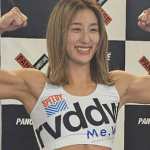 ラウンドガール田丸りさ、長い脚でキック連発「またムキムキになっちゃうじゃん!」