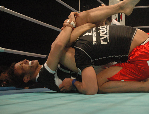 所英男に三角絞めで一本勝ちする勝村周一朗(2006年5月)