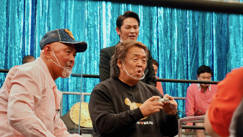 武藤啓二(左)と⻑州力(中央前)