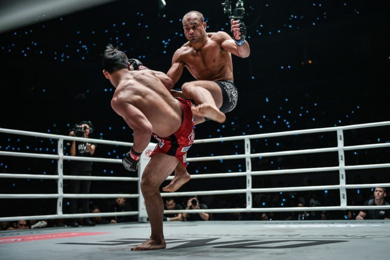 高さのある飛びヒザ蹴りを放つアルバレス(C)ONE Championship