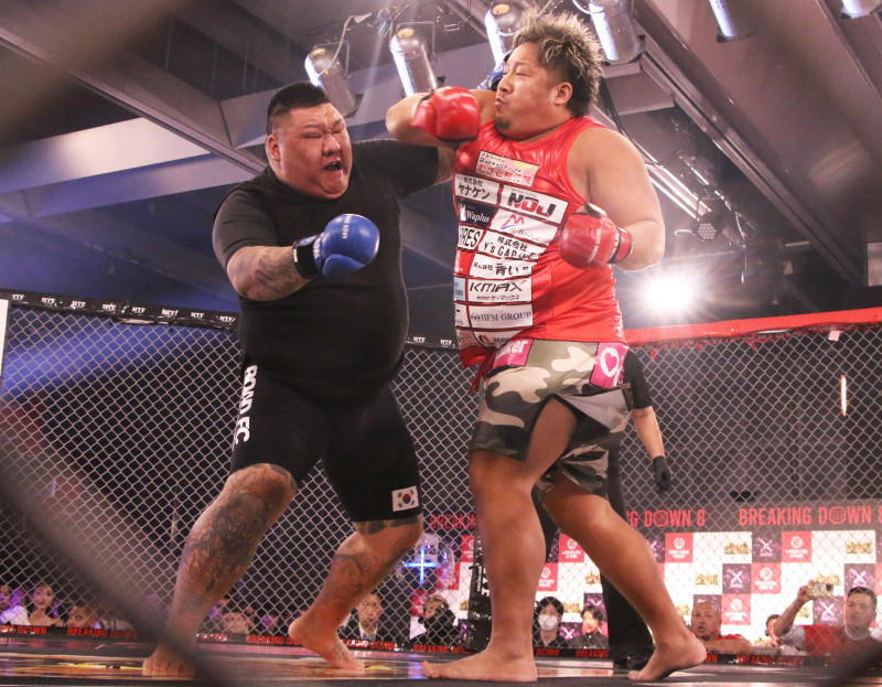 真っ向から打ち合うノッコン(右)とジェフン(左)