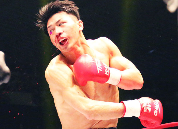 骨折負傷した右拳で大きくパンチを振る朝久