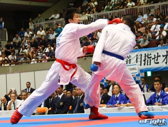 スピードある突きを放つ荒賀