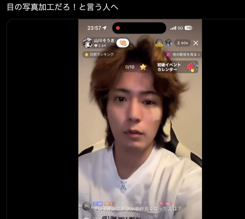 正面はやや斜視がある程度だが(山川のXより)