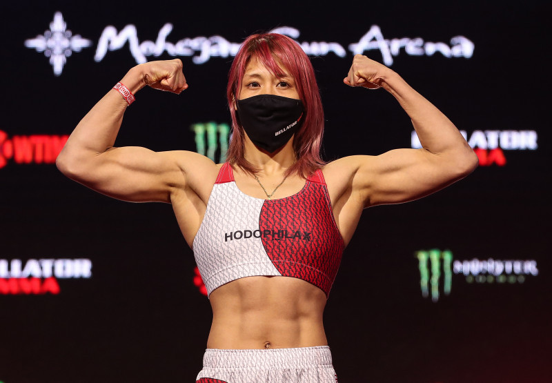 ムキムキのマッスルボディで前日計量をパスした渡辺=4月2日©️Bellator