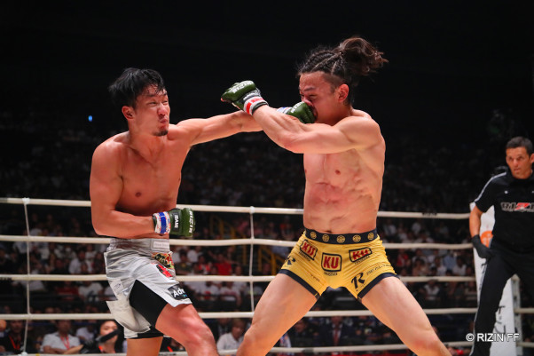 矢地祐介にパンチを叩き込む朝倉=19年7月