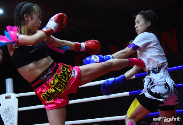 華麗な左ミドルを見せるKAREN(左)