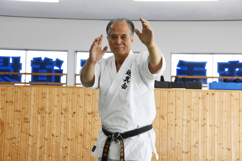 力石のモデル、現在73歳の山崎照朝、週に2度の空手お稽古を欠かさず健在だ(21年2月撮影)