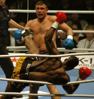 アーツがボンヤスキーをロープに追い込む