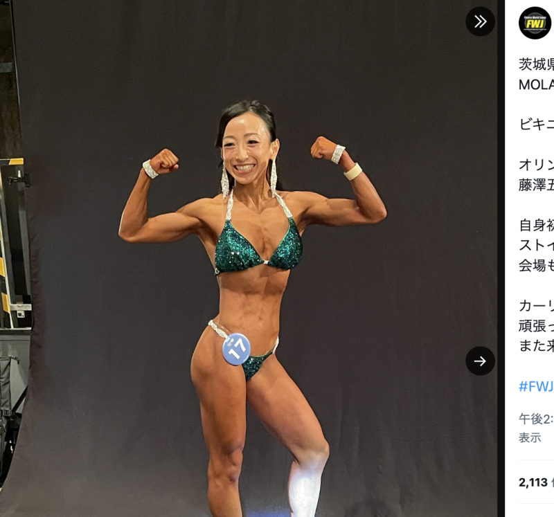 藤澤がマッスルポーズ(FWJ公式twitterより)
