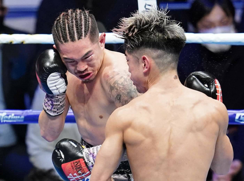井岡がKOした3度目の左フックがヒットした瞬間(Naoki Fukuda)