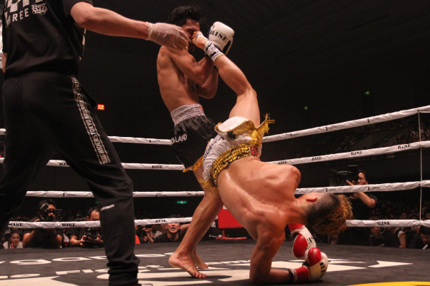 スアキムにアクロバットな回転蹴りを放つ那須川天心。TKO勝利したが、これはRISE3大ファイト入りになるか