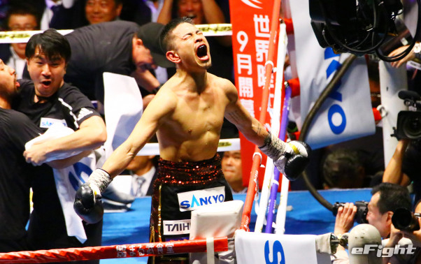 4階級制覇に成功し雄叫びを上げる井岡(19年6月)