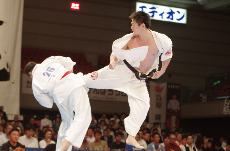 優勝候補筆頭の加藤大喜。足技での一本、ノックダウンも多い。しかし優勝するまでに他流派を含め、多くの強豪に勝たなければならない。