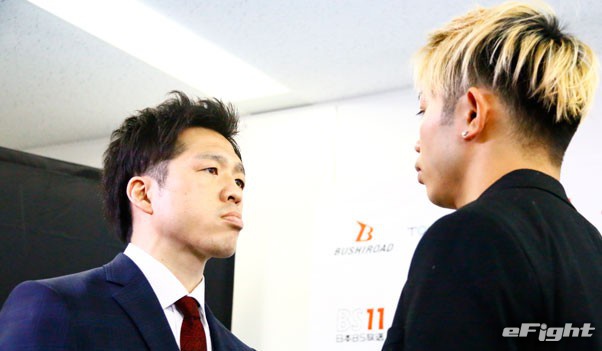 早くも火花を散らしているスーパーライト級トーナメント1回戦の健太(左)vs不可思(右)