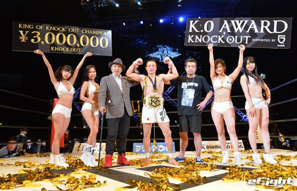 ミスターKNOCK OUTと言える存在となった、初代ライト級王者・森井(中央)