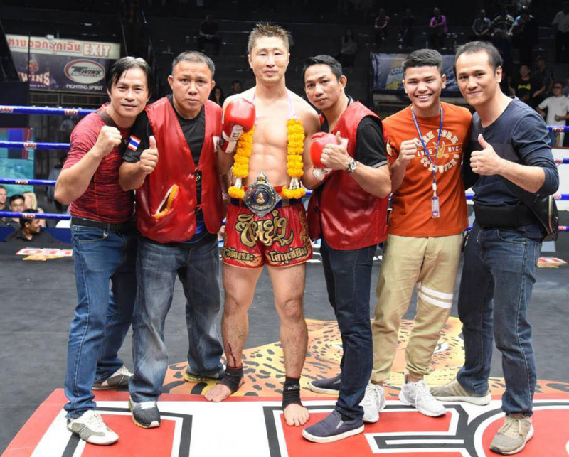 40歳、5度目の挑戦でラジャダムナン王座に就いた石毛(中央)