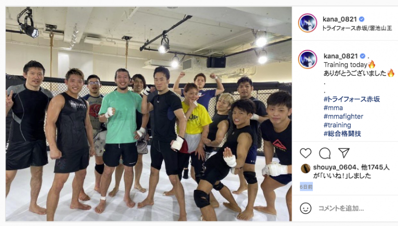 渡辺は朝倉未来らと次戦に向け練習開始(中央黄色いTシャツが渡辺=@kana_0821 より)
