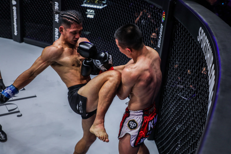 カピタンをケージに追い込む秋元©︎ONE Championship