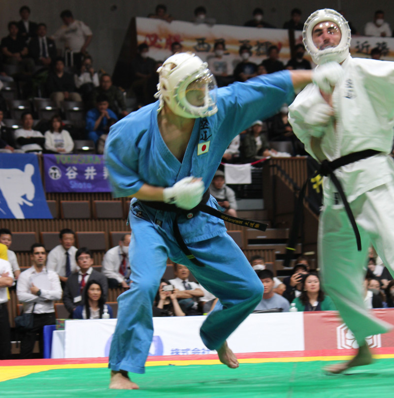 強烈なパンチを放つ岩﨑(決勝戦)