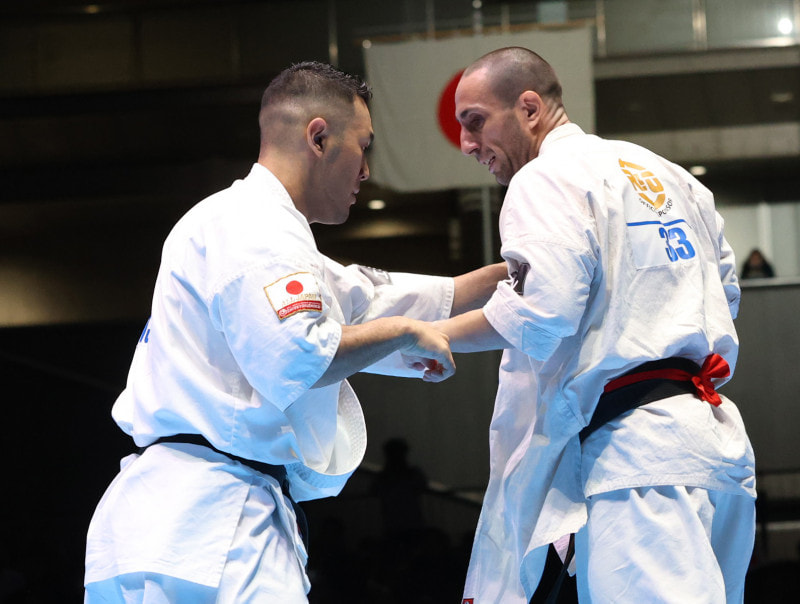 入来(左)がヴァレリーをパンチで崩す