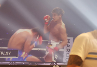 そして、軍司は顔面からボディへパンチのコンビネーションで反撃。強烈な左ボディが入ると、ペットルンルアンはたまらず苦悶の表情でダウン。そのままゴングが鳴らされ、元ムエタイチャンピオンが立ち上がることはなかった。
