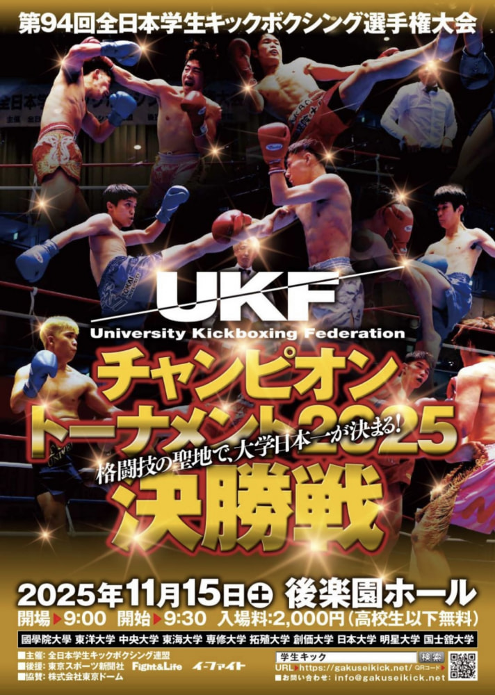 大会名:第94回全日本学生キックボクシング選手権大会 UKFチャンピオントーナメント2025決勝戦