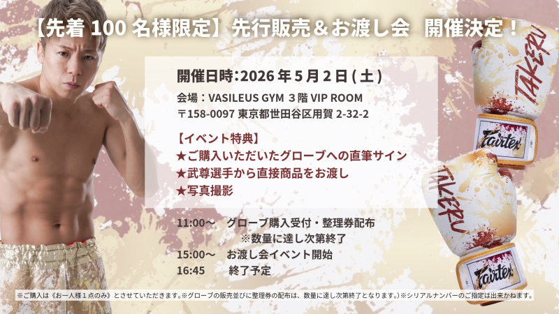 「武尊選手引退記念グローブ」先行販売&お渡し会イベント概要