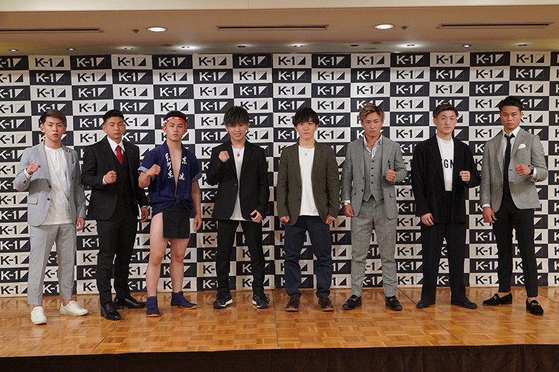 バンタム級トーナメントに出場者(左から)橋本、大村、壬生狼、野田、松本、鵜澤、黒田、池田
