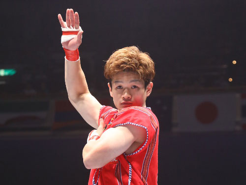ラウェイの「レッカマウン」ポーズをとる金子(C)M-1 Sports Media