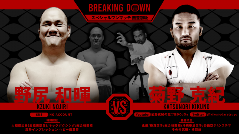 菊野は元力士のキックボクサー・野尻和暉と対戦