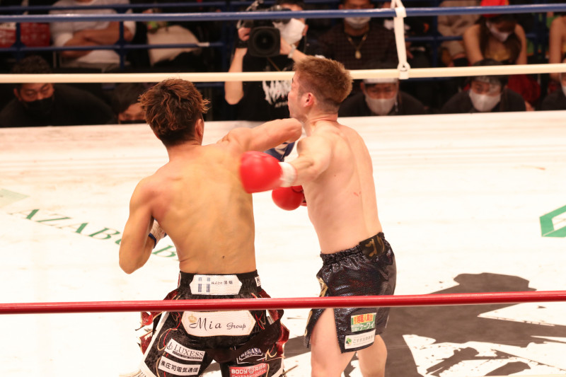 國枝(左)は打ち合いで桝本を下がらせた