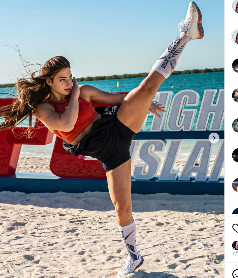 砂浜でハイキックを放つジョジュア@likajojuaより