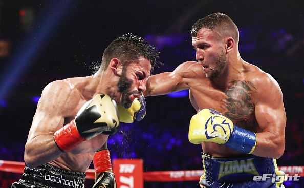 4団体制覇戦に臨むロマチェンコ(右)。写真はリナレスとの一戦(Getty/eFight)