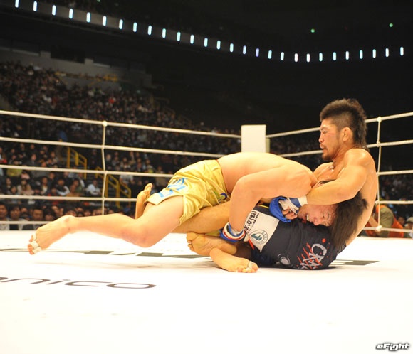▲約1年2カ月ぶりの復帰戦でシヴァー(左)に勝利した川尻(右)は、渾身のガッツポーズ(Photo=GettyImages)