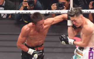 互いにオーソドックス、英豪が積極的に攻めると、大畑が即座に左カウンターを取るヒリヒリする展開に…(続きと写真を見る)