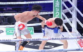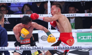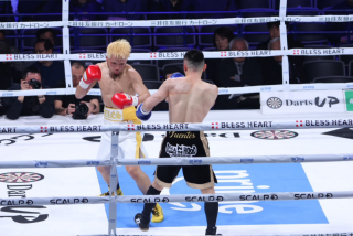 両構えの堤はオーソドックスでスタート。しかし4Rには比嘉の飛び込みでバッティング、堤の右目上から流血する。堤がギアを上げ、パンチ連打も、比嘉はジャブ、左フックと的確に当てる。しかし堤も流血しながら…