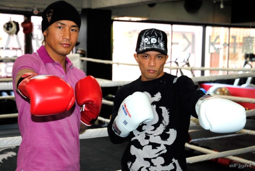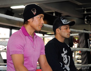 ▲東日本大震災の被災者のために魔裟斗(左)と山本“KID”徳郁が強力タッグを結成