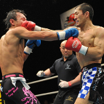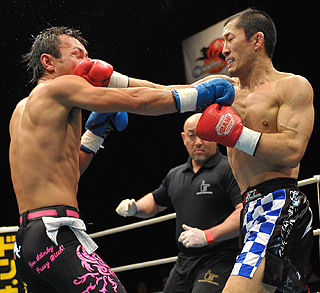 シュートボクシングの試合で歌川(左)からダウンを奪ったこともある石澤(右)