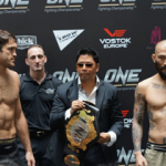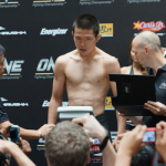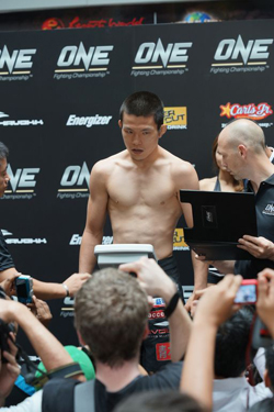 鋭い眼光で計量に臨んだ青木。今回がONE FCでの初の試合となる