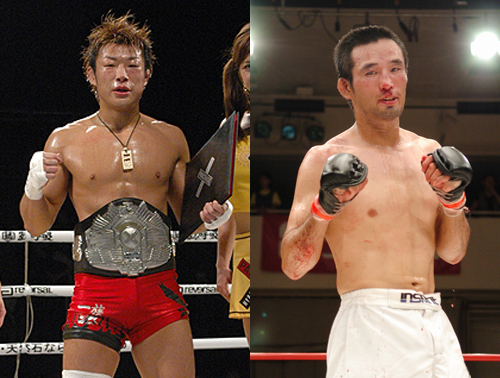 ライト級王者ISAO(左)が修斗世界ランカーの冨樫(右)を迎え撃つ