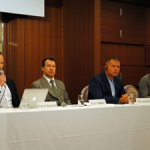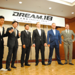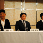 左から)北岡、川尻、高谷、ピエール会長、バス・ブーン、スコット、笹原広報