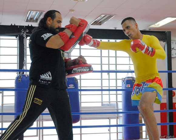 ▲カナベラルは伸びのあるストレートパンチをミットに突き刺す