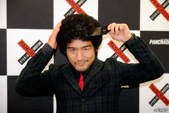 ▲自慢のアフロヘアーでポーズを決めるマモル