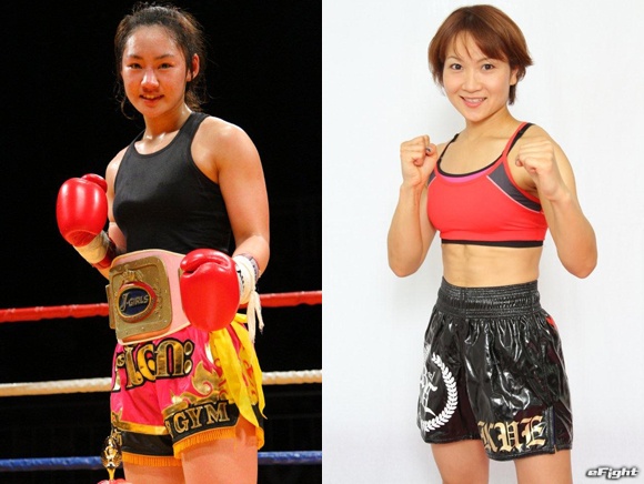 ▲谷村郁江(右)が引退試合でJ-GIRLSバンタム級王者・陣内まどか(左)と対戦