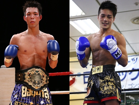 ▲MA日本スーパーバンタム級王座決定戦で対戦するJ-NETWORKスーパーバンタム級王者・渡辺優太(左)とKING強介(右)