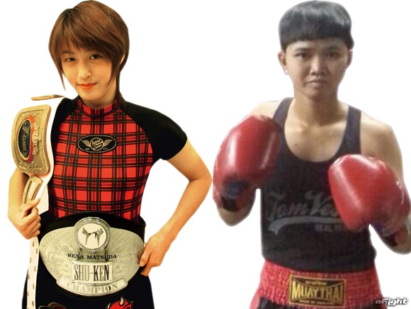 ▲メインイベントで対戦する初代蹴拳女子フライ級&J-GIRLS同級王者・松田玲奈(左)と元イサン・フライ級王者マリサレック・ペッノンセン(右)