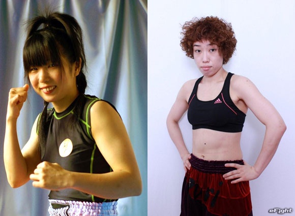 ▲三堀(左)が1年半ぶりに参戦。フライ級で白石(右)と対戦する