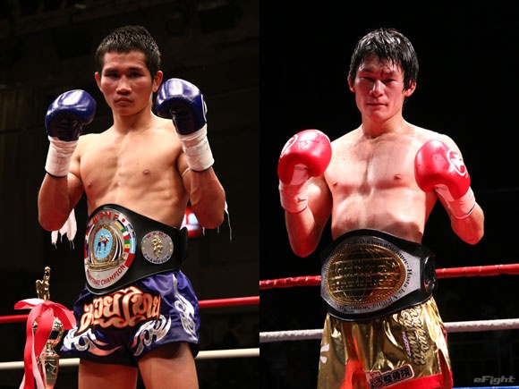 ▲日本で3連勝している王者ジョイシー(左)に挑むのはT-98(右)