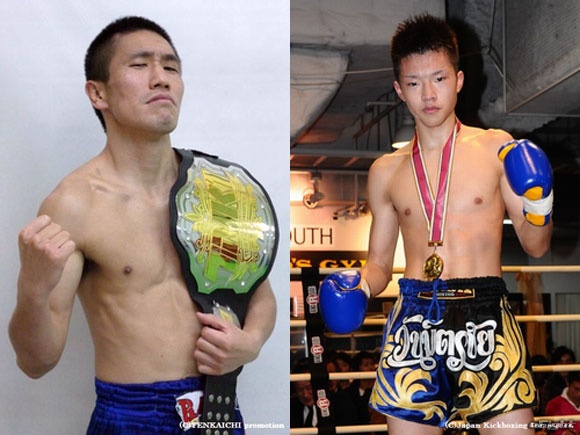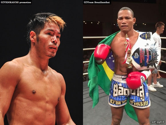 ▲前回の試合で眉間をヒジで切られた廣虎(左)がサントス(右)と再起戦